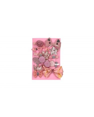 24 Coffrets 18 accessoires cheveux enfant – barrettes, élastiques et pinces assorties