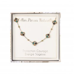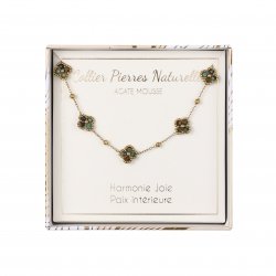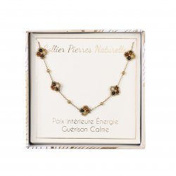 Ce collier raffiné en acier inoxydable est orné d'un pendentif en forme de trèfle, délicatement serti de pierres naturelles. Son design élégant et intemporel en fait un bijou idéal pour sublimer votre tenue au quotidien ✨.