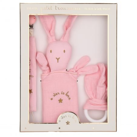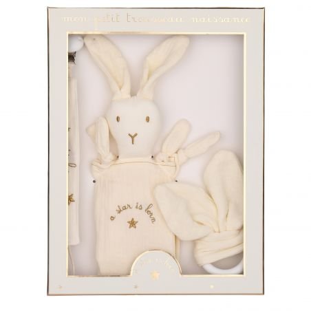 - 1 doudou lapin de 26 X 45.5 cm : doux et câlin, ce doudou deviendra le compagnon préféré de votre bébé, offrant confort et réconfort à tout moment.