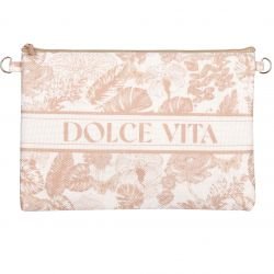 Découvrez notre collection exquise de 24 pochettes beige, rehaussées d'un motif délicat Toile de Jouy dans des tons de beiges, ajoutant une touche de charme et d'élégance à votre ensemble. Chaque pochette présente un liseré blanc au centre, avec l'inscription "DOLCE VITA" en lettres beiges discrètes, évoquant l'art de vivre italien. Conçues pour allier style et polyvalence, ces pochettes sont équipées d'une chaîne dorée permettant de les porter comme un sac à main, ajoutant une dimension sophistiquée à votre look. De plus, cette chaîne peut être facilement retirée, transformant la pochette en un accessoire pratique et élégant pour toutes les occasions. Avec des dimensions de (22 cm de largeur et 17 cm de hauteur), chaque pochette offre un espace généreux pour les essentiels, tout en restant compacte et facile à transporter. Parfaites pour accompagner vos tenues du quotidien ou pour ajouter une touche d'élégance aux soirées spéciales, ces sac à main tendance beige de la collection Toile de Jouy sont un choix incontournable pour celles qui recherchent à la fois style et fonctionnalité.