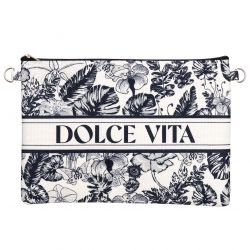Explorez notre superbe collection de 24 pochettes noires, sublimées par des motifs floraux noirs inspirés de la célèbre Toile de Jouy, ajoutant une touche d'élégance intemporelle à votre style. Chaque sac à main tendance est ornée d'un élégant liseré blanc au centre, où est discrètement inscrite en noir l'inscription "DOLCE VITA", évoquant le charme de la vie italienne. Pour une polyvalence absolue, chaque pochette est accompagnée d'une délicate chaîne dorée, offrant la possibilité de la porter avec grâce comme un sac à main. La chaîne est également amovible, permettant une transition facile pour un usage à la main. Avec des dimensions parfaites de (22 cm de largeur et 17 cm de hauteur), ces pochettes modernes offrent amplement d'espace pour les essentiels tout en restant compactes et faciles à transporter. Que ce soit pour une journée décontractée ou une soirée spéciale, ces pochettes noires de la collection Toile de Jouy sont l'accessoire parfait pour celles qui recherchent à la fois style et fonctionnalité.
