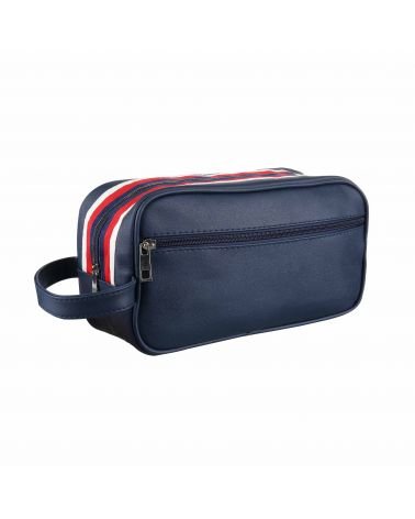 Bande colorée : Cette bande est composée de trois sections : une extrémité blanche, une section rouge centrale et une section de la couleur de la trousse (noir, bleu foncé ou gris foncé). Ce design élégant confère aux trousses un look moderne et chic.