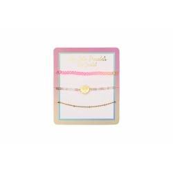 Explorez notre ravissante collection de 36 cartes, chacune composée de 3 bracelets différents en cristal et en acier inoxydable de la collection Rainbow, pour allier trois styles distincts. Disponibles dans une variété de compositions et de styles, chacun de ces bracelets tendance en cristal véritable et en acier est orné, selon le modèle, de pierres naturelles ou de pendentifs dorés en forme de papillon, d'arbre ou de médaillon. De plus, les bracelets en acier inoxydable sont également ornés de perles multicolores, bleues ou vertes. Grâce à leur composition en acier inoxydable, ces bracelets d'été chics sont résistants à l'eau, assurant des baignades sans souci.