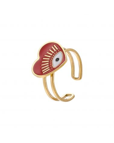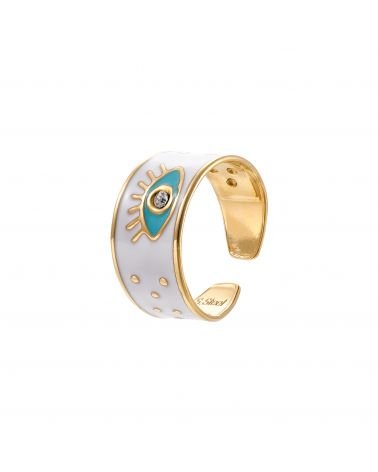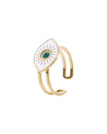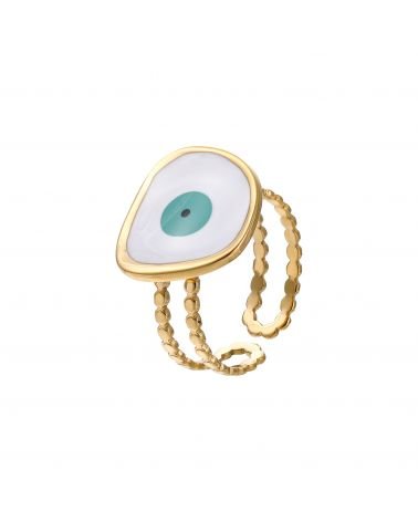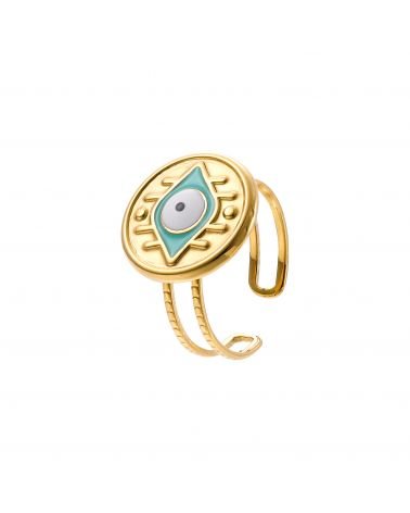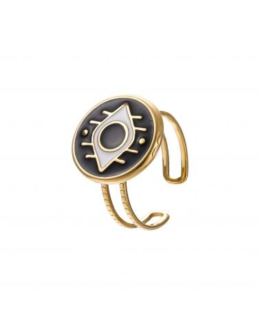 Lot de 6 bagues en acier doré et résine thème "Oeil"