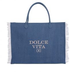 Plongez dans l'élégance décontractée avec notre ensemble de 24 sacs cabas à franges de taille GM, faisant partie de la collection Jean. Chaque sac cabas tendance présente une teinte bleue sophistiquée, avec une texture en jean qui apporte une touche de style intemporel. Les franges blanches ornent les quatre extrémités du sac, ajoutant une note de dynamisme et de mouvement à votre tenue. Au centre de chaque sac, vous trouverez l'inscription "Dolce Vita" suivie d'un motif de papillon, tous deux dans des tons beige foncé ou beige clair, ajoutant une touche de charme et d'élégance à chaque pièce. Ces détails subtils rehaussent le design du sac et lui confèrent une touche de sophistication supplémentaire. Avec des dimensions généreuses de (60 cm de largeur, 44 cm de hauteur et 15 cm de profondeur) , chaque sac offre amplement d'espace pour transporter vos essentiels quotidiens avec facilité et confort. Que ce soit pour une journée de shopping en ville ou une escapade décontractée, ces sacs cabas sont le compagnon idéal pour compléter votre look avec style et praticité.
