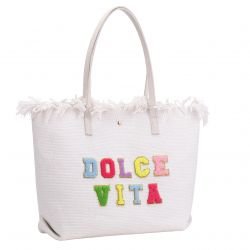 Découvrez notre collection de 12 sacs de plage de la collection Patch, tendance et pratique. Ils sont disponibles dans un seul modèle. Les sacs cabas de plage sont de couleur blanche avec une inscription multicolore "Dolce Vita" et de la fourrure qui entoure le haut du sac. Composés d'une grande anse, ils sont pratiques à transporter et se glissent facilement sur les épaules pour plus de confort. Ces accessoires de mode tendance offrent un grand espace de rangement avec leurs dimensions généreuses (50 cm de hauteur et 35 cm de largeur), permettant de transporter tous les essentiels du quotidien et bien plus encore. Ces sacs cabas blancs design se marieront parfaitement avec les tenues d'été.